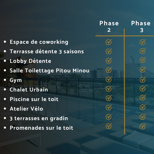 Ici, l'espace est non seulement optimisé pour votre confort, mais aussi enrichi par plus de 20 000pi² d'espaces communs pratiques, diversifiés et adaptés à la réalité d’aujourd’hui.